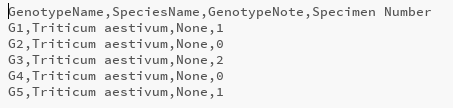 Since genotypes can have an arbitrary number of aliases, traits, and factors, this import function requires that the start and end columns for them. This means:
