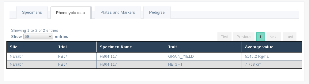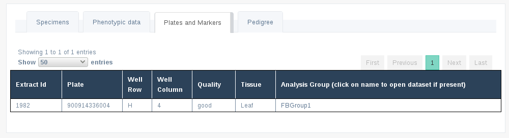The Genotype Data Page provides the data/details about each genotype that is contained in your KDDart instance.