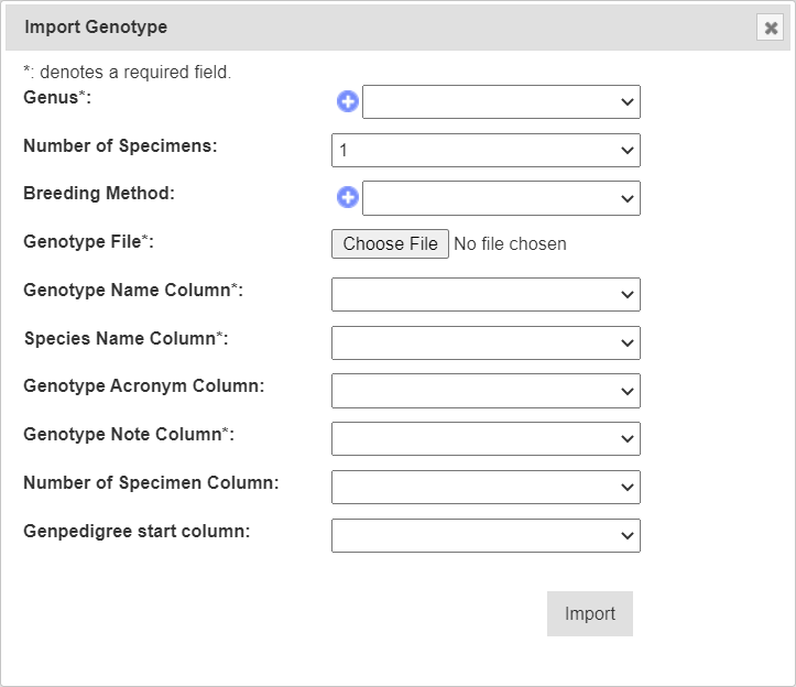 Genotype records may either be entered manually or imported from a file (see the Import Genotype section).