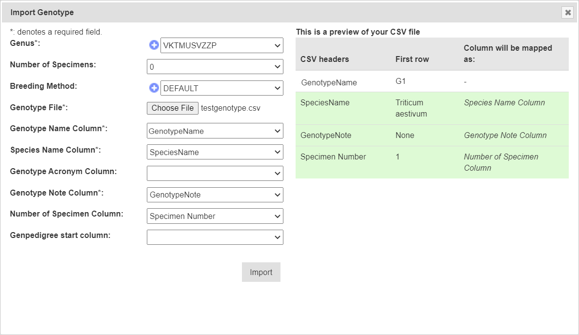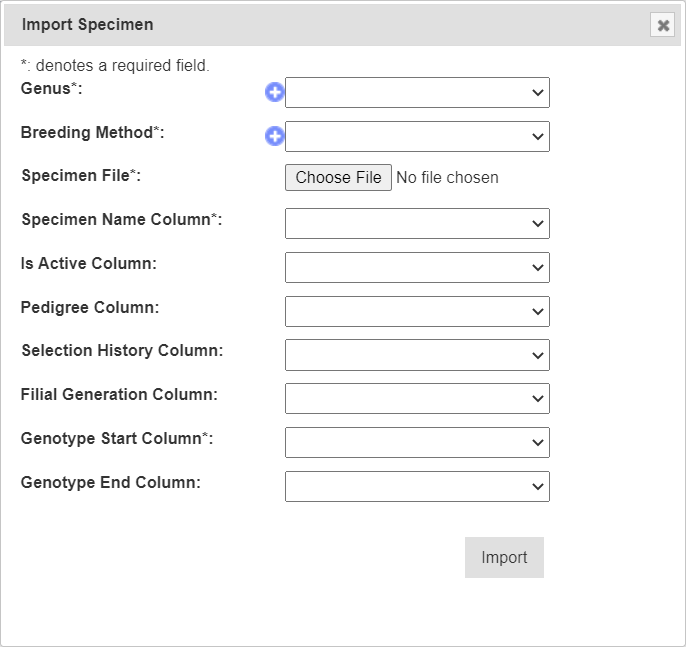 Number of ‘Specimens greater than zero’ - The specified number of specimen records will be created for each genotype record imported unless overridden by the individual record.